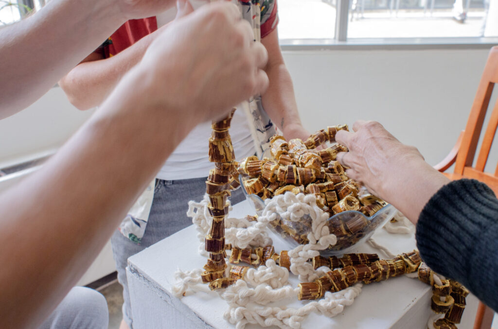 For this Open House, Ama would like to extend a warm welcome in particular to all “children of African Aunties” to join her in paying homage to the Aunties and Uncles who tend this earth to sustain migrated families. Within an installation of visual elements from Ama’s ongoing research, you are invited to lift up the labor of African elders who help families ground into new terrain. We will collectively thread their stories into our own in a continuous beading activity, to the sounds of old school African party music.