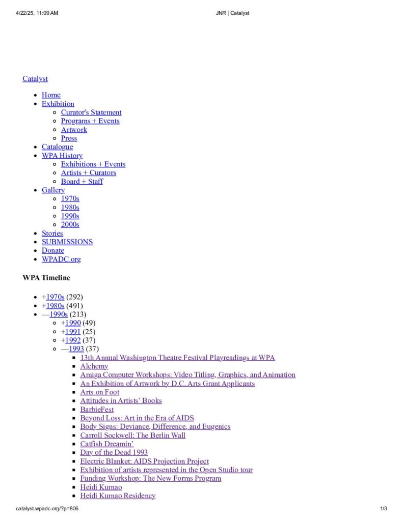 An exhibition of works from the 1930s to the present depicting the changing Anacostia landscape. Closing reception on November 21.