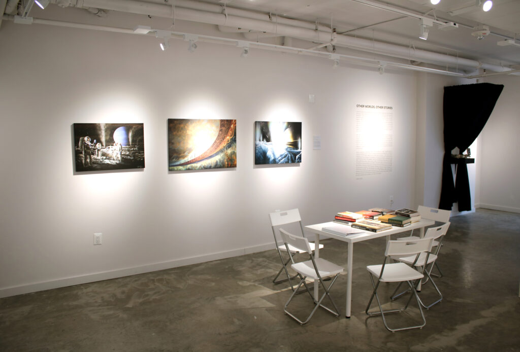The artworks range from traditional painted images of distant worlds; to works of historical fiction illustrated with digital photography and collage; to interactive live performances in a test kitchen for astronauts. Together, they open a conversation about the heady intermingling of fantasy, art, and science that kicked off the space race in the twentieth century and still defines the U.S. space program today.