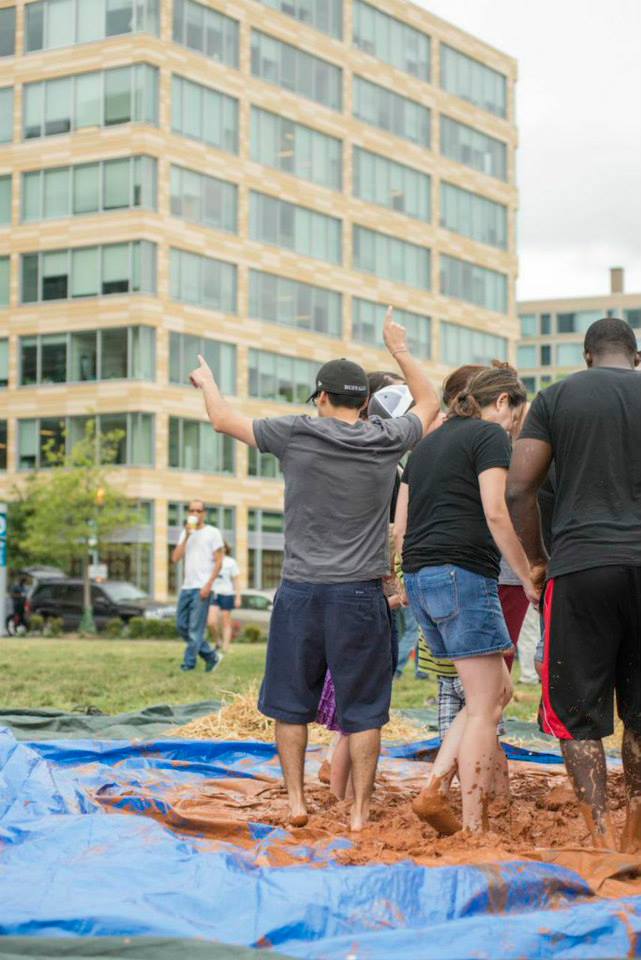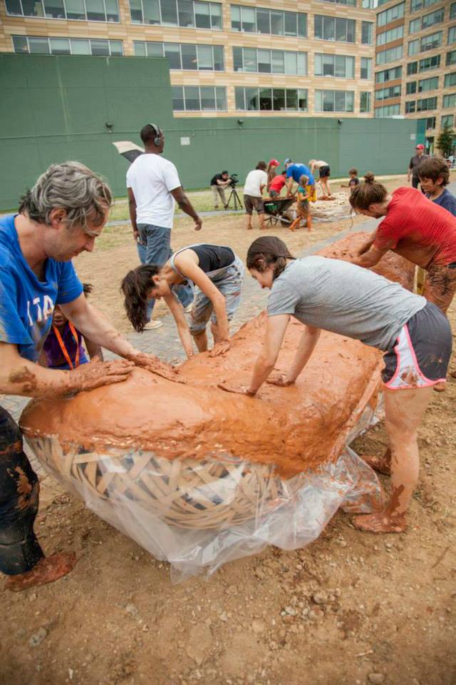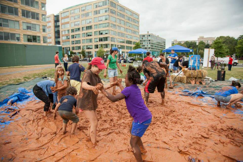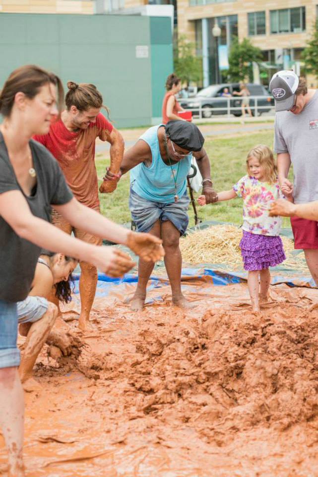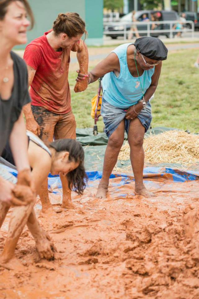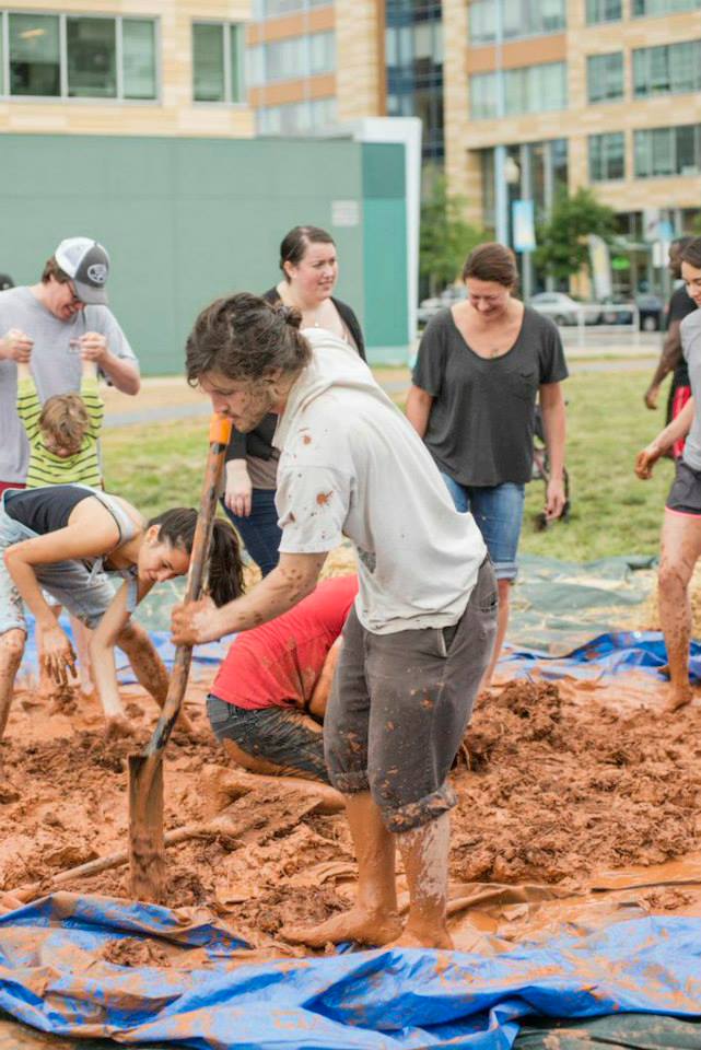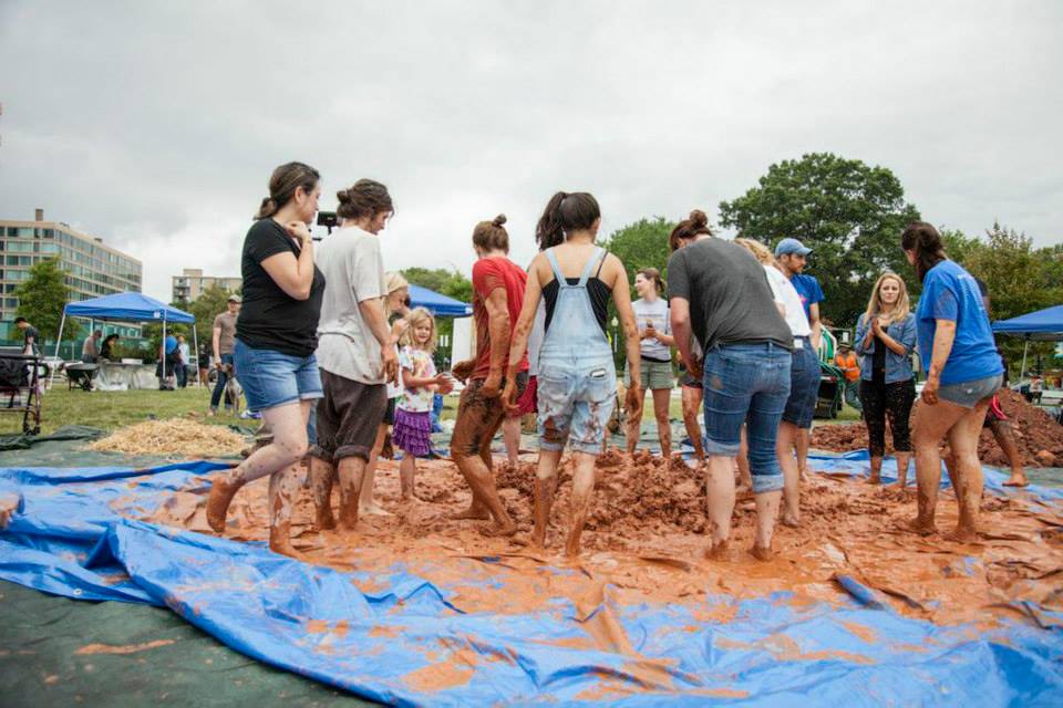 WPA was excited to invite everyone to the Mud Dance, August 23rd from 12pm to 10pm, to eat good food, dance, meet other members of the SWDC community, listen to great music, and in-between combine materials to create a mixture of mud, straw, and recycled materials (called “cob”) that formed benches designed by artist Michael Koliner!