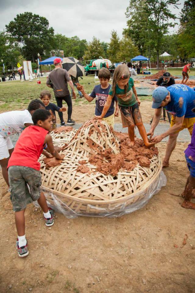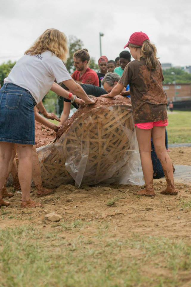 The cob benches made during the event were part of Lance Fung’s larger public park installation for the 5×5 Project called Nonuments, which seeks to challenge our community’s understanding of the word “monument” and reflect on ideas, peoples and personal struggles that are not the subjects of the traditional monuments that occupy our city. The cob-seating project seeks to enhance this temporary public space in which transformative interactions can take place.