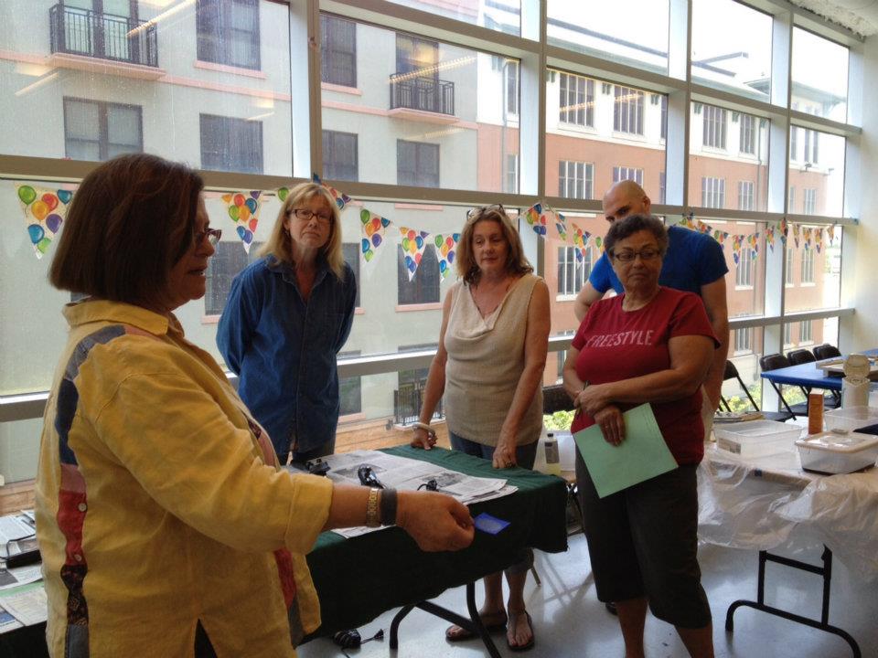 WPA’s Acid Etching Image Transfer Workshop Mimi Harris taught an exciting workshop on a metalworking technique at VisArts on June 16, 2012. Tags Mimi Harris DATE June 16, 2012 TYPE Workshop ARTIST & COLLABORATORS Mimi Harris