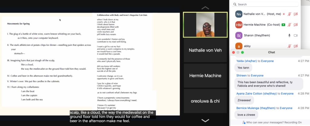 and writer Fabiola Ching alongside her collaborators from Hermetic State (https://hermeticstate.com/), a literary hub for black lesbians.